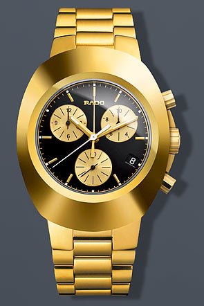 Compare Rado Original Chronograph Gold 38mm Watch Black Dial PVD Bracelet R12949153